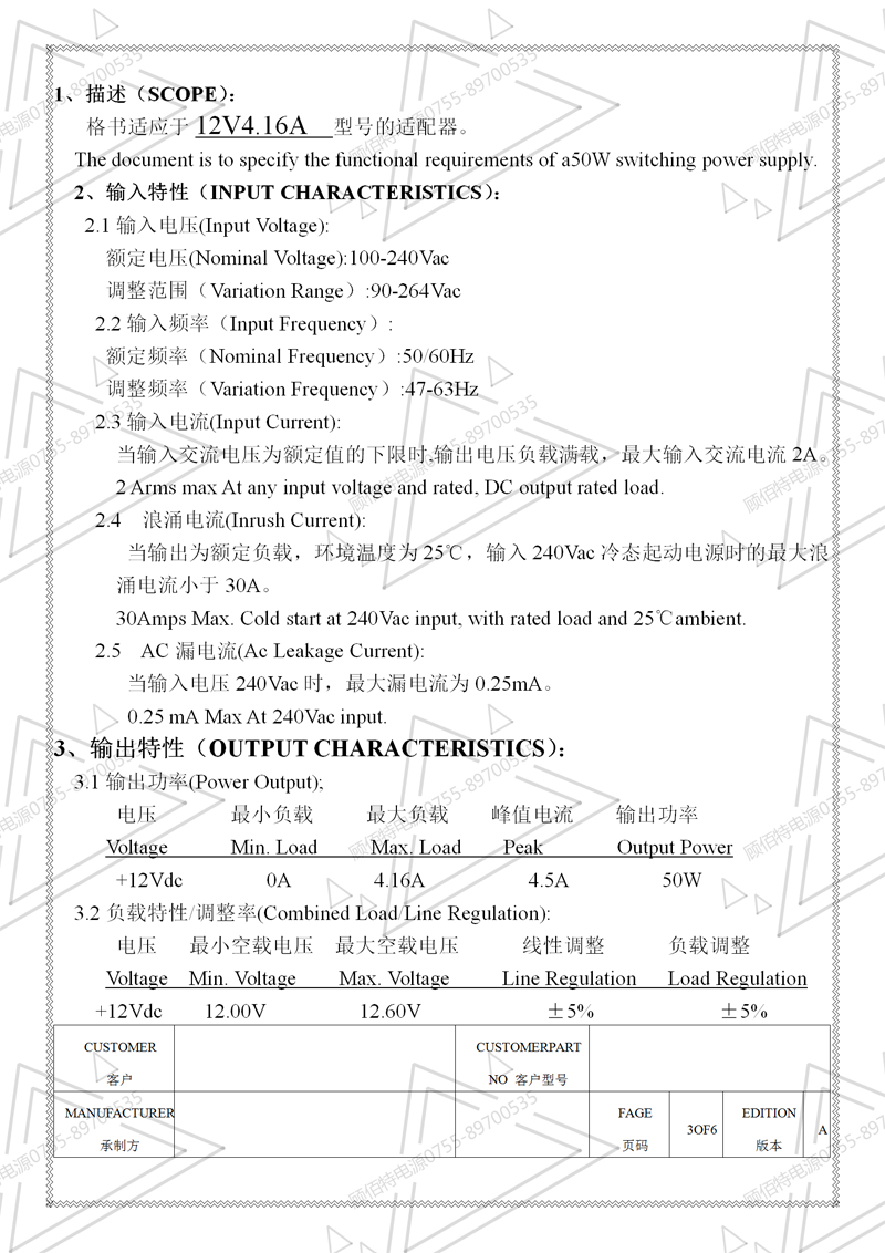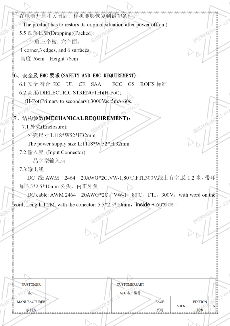 24V6A電源適配器帶PFC電路規格書(新模具)